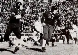 A key player on the BC team, halfback Lou Montgomery, the first Black athlete in the college's history, was forced to sit out the game due to racial segregation policies of the era.[4] Sanford said that Montgomery would not be allowed to participate, asserting that keeping him out of the game was "deemed advisable, in view of the general attitude regarding negroes."[5] The first interracial bowl game did not occur until after World War II, the 1948 Cotton Bowl Classic