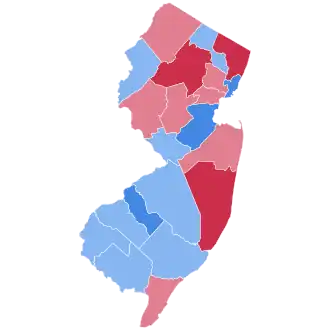 Roosevelt narrowly carried New Jersey with 51.55 percent of the vote to Willkie's 47.93 percent, a margin of 3.62 percent.[2] Reflecting the closeness of the statewide result, Roosevelt and Willkie virtually split the state's 21 counties: Roosevelt won 11 counties to Willkie's ten. Roosevelt edged out Willkie statewide with decisive victories in some of the most heavily populated parts of the state, while keeping the results close in heavily populated counties that he lost.