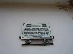 Plaque on the wall of the Odessa-Sortuvalna railway station, commemorating the Holocaust