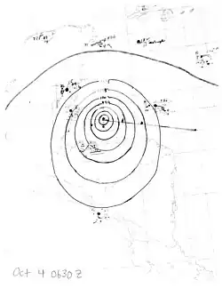 Early on October 2, the tenth tropical storm of the season was noted about 150 mi (240 km) northeast of the Nicaragua–Honduras border. It intensified into a Category 1 hurricane by 00:00 UTC the next day on a general west-northwest track and peaked with winds of 90 mph (140 km/h) 24 hours later,[2] although the crew aboard a reconnaissance aircraft originally estimated 100 mph (160 km/h) sustained winds.[3] The cyclone tracked west-southwest and made landfall north of Punta Gorda, Belize at peak strength, quickly weakening once inland. Crossing Guatemala and Chiapas, the depression paralleled the coastline of Mexico for a time before moving ashore west of Lázaro Cárdenas, Michoacán. The wilting system dissipated over southern Durango by 12:00 UTC on October 7.[2]