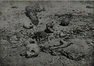 In Bewal village, a house where villagers had taken refuge was besieged and villagers were asked to surrender their arms and convert to Islam. One group of the villagers took up the offer and were subsequently converted, while the remaining were periodically attacked. The house was set on fire, following which the villagers shifted to a Gurdwara where they were attacked and massacred. One survivor claimed that out of a total of 500 Hindu and Sikh villagers, only 76 had survived, of whom nearly half had been abducted.[41] Similar attacks happened at the villages of Mughal and Bassali.[42] Kallar, Dubheran, Jhika Gali and Kuri were also attacked.[43][44] Some of the survivors had been left disfigured and mutilated, breasts of many women who had been raped were cut-off.[45] Villages in the Gujar Khan and Cambellpur districts were decimated, dead bodies of children were found hanging from trees and girls as young as eleven had been gang-raped.[44] The All India Congress Committee, in its report on the violence, described the strategy of the attacks as follows:[46]