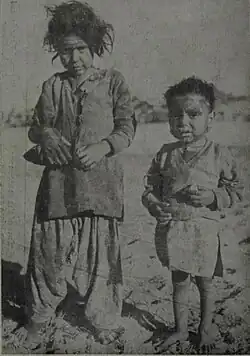 Images of the aftermath of the massacres were compiled by politician Prabodh Chandra and published in a booklet titled Rape of Rawalpindi in 1947, soon after the massacres. The circulation of this booklet was stopped by the government fearing retaliation against Muslims in East Punjab.[60][m] The events, in particular the massacre and mass suicide at Thoha Khalsa, were depicted in the 1988 television film Tamas, directed by Govind Nihalani. The film was based on Bhisham Sahni's Hindi novel of the same name.[81][n] An incident similar to the Thoha Khalsa mass suicide is also depicted in the 2003 film Khamosh Pani.[83] A Punjabi novel based on the events called Khoon de Sohille written by Nanak Singh was published in 1948. It was translated into English as Hymns in Blood (2022).[84] Other works based on the violence include Kartar Singh Duggal’s 1951 Punjabi novel Nahun te maas (translated into English as Twice Born Twice Dead in 1979), Shauna Singh Baldwin’s 1999 English novel What the Body Remembers and Manjit Sachdeva's 2013 English novel Lost Generations.[85][86]