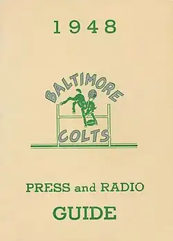 3. ^ Baltimore Colts vs. Frisco Forty-Niners, Oct 10. Baltimore, MD: Baltimore Colts Football Club, Inc., 1948; pp. 16–17.