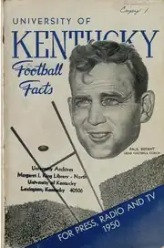The 1950 Kentucky Wildcats football team represented the University of Kentucky in the 1950 college football season. The offense scored 393 points while the defense allowed 69 points. Led by head coach Bear Bryant, the Wildcats were the SEC champions and won the 1951 Sugar Bowl over the 10–0 No. 1 Oklahoma Sooners.
