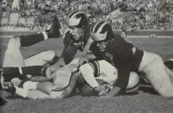 5. ^ George Rodgerson (November 23, 1952). "Badgers, Purdue Share Big 10 Title; Both 'Sweating Out' Rose Bowl Bid; Wisconsin, Gophers Battle to 21-21 Tie". Wisconsin State Journal. pp. 1, 2 – via Newspapers.com.