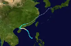 Lois formed east of the Philippines on August 22. It moved northwestward, and hit Luzon as a tropical storm. As it entered the South China Sea, Lois intensified into a category 1 typhoon. It hit China and Vietnam before dissipating on August 30.