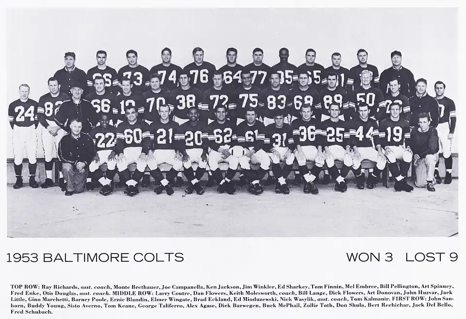 1. ^ a b c d Sam Banks (ed.), The Baltimore Colts: 1953 Press, Radio, and Television Guide. Baltimore, MD: Baltimore Colts Football Club, 1953, p. 3.