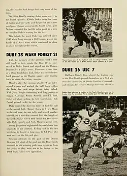 9. ^ "Duke's 26–7 victory over Gamecocks bolsters bowl hopes". The Sunday Star. November 21, 1954. Retrieved January 5, 2024 – via Newspapers.com.