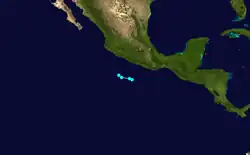 The season's eleven known storm identified several hundred miles south of Mexico on October 17. Quickly tracking northwestward, the storm attained an intensity of 85 mph (135 km/h) during its existence. Early on October 19, the hurricane turned due north, brushing the coastline of Mexico before dissipating just offshore the following day.[2]