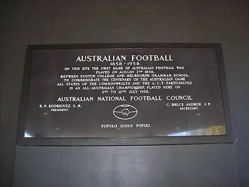 The stone laid at the Melbourne Cricket Ground to commemorate the Centenary Carnival