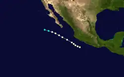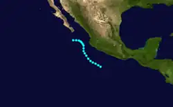 Fernanda formed on September 3 southwest of Guatemala where it moved west-northwest as a category 1 hurricane before dissipating on September 8 southwest of Mexico.[2]