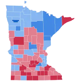Minnesota was won by the Democratic Party candidate U.S. Senator John F. Kennedy of Massachusetts won the state over incumbent Vice President Richard Nixon by a margin of 22,018 votes, or 1.42%. Kennedy went on to win the election nationally, but by the closest margin since James Garfield's 0.11% victory over Winfield Scott Hancock in 1880. This was the last presidential election held in Minnesota before the elimination of the 9th congressional district in 1963. It was also the last time Mower County voted for a Republican presidential candidate until Donald Trump in 2016.[2] This marks the last time heavily populated Hennepin County voted for a candidate who lost the state as a whole.[3] This election in the state would begin an ongoing streak of the state voting Democrat in every election starting with this one to the present day, with 1972 being the sole exception.
