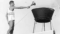 Israeli runner Yoseph Lahav lighting the cauldron at the Opening Ceremony.