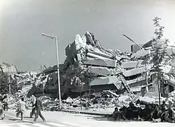 The 1963 Skopje earthquake (Macedonian: Скопски земјотрес од 1963 година) was a 6.1 moment magnitude earthquake which occurred in Skopje, SR Macedonia (present-day North Macedonia), then part of the SFR Yugoslavia, on July 26, 1963, which killed over 1,070 people, injured between 3,000[5] and 4,000[6] and left more than 200,000 people homeless.[4] About 80 percent of the city was destroyed.[4]
