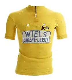There were several classifications in the 1963 Tour de France, two of them awarding jerseys to their leaders.[14] The most important was the general classification, calculated by adding each cyclist's finishing times on each stage. The cyclist with the least accumulated time was the race leader, identified by the yellow jersey; the winner of this classification is considered the winner of the Tour.[15]