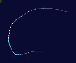 | Peak intensity | 185 km/h (115 mph) (1-min); 950 hPa (mbar) |