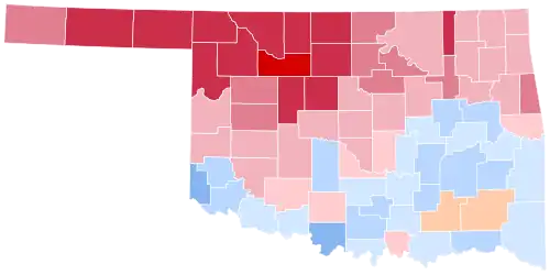 Wallace’s performance is the second-best by a third-party candidate in Oklahoma,[2] behind Ross Perot in 1992. Oklahoma was also Wallace's best performance in a state that had not been a part of the Confederacy. The Wallace pluralities in Atoka and Pushmataha Counties in the southeast marked the only occasion that a third-party candidate has ever carried any Oklahoma county.