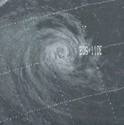 The most intense tropical cyclone of the season developed in the Banda Sea on 26 April. The storm peaked with a barometric pressure of 950 mbar (28 inHg). The storm struck the island of Flores before dissipating on 29 April. Widespread destruction of houses, schools, and bridges was reported in four of the island's districts. 53 on Flores were killed, and 21 perished in the sinking of a Timorese fishing ship, the O Arbiru.[3] Additionally, over 1,500 fisherman were reported lost at sea. The area's remoteness kept information about the cyclone's effects from reaching the news for over a month.[4] The storm killed a total of 1,650 people, making it the deadliest tropical cyclone recorded in the Southern Hemisphere.[1][5]