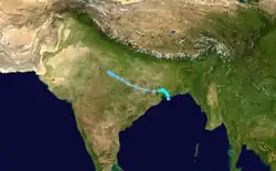 This system formed as a tropical depression in the southern Bay on December 5, strengthening into a tropical storm as it turned north-northwest on December 5, then to near-hurricane strength on December 6. The cyclone recurved, striking Indian near Calcutta on December 9, though its main impacts were across Bangladesh.[4]