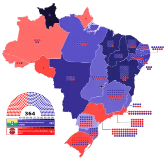 Parliamentary elections were held in Brazil on 15 November 1974.[1] The National Renewal Alliance won 203 of the 364 seats in the Chamber of Deputies, whilst the Brazilian Democratic Movement won 16 of the 22 seats in the Senate. Voter turnout was 81%.[2]