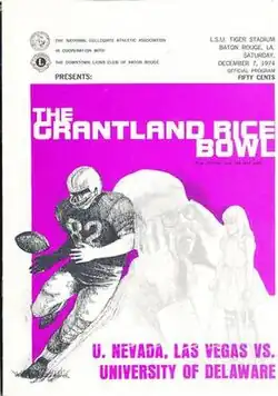 The 1974 Grantland Rice Bowl was an NCAA Division II game following the 1974 season, between the Delaware Fightin' Blue Hens and the UNLV Rebels. This was the first time that the game was played at Tiger Stadium on the campus of LSU. Delaware running back Vern Roberts was named the game's outstanding offensive player, while his teammate defensive back Mike Ebersol was named the game's outstanding defensive player.