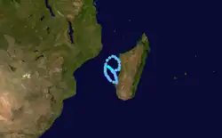 Estelle existed from February 10 to February 18. For several days, Estelle moved around the Mascarene Islands, with a peak rainfall total on Réunion of 544 mm (21.4 in) recorded at Petite Plaine.[5]