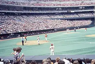 Reds vs. Giants at Riverfront Stadium, 1978. This was the 25th game of Pete Rose's 44-game hitting streak.