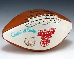 A 1978 Holiday Bowl football, signed by BYU president Dallin H. Oaks.