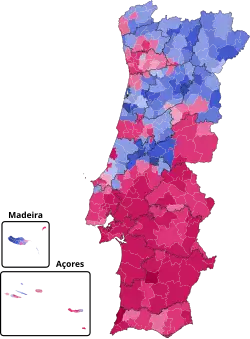 | Aveiro | 161,264 | 46.09% | 177,116 | 50.62% | 2,924 | 0.84% | 4,441 | 1.27% | 3,441 | 0.98% | 699 | 0.20% | 84.56% | |