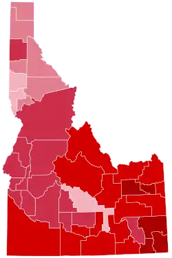 Idaho was won by former California Governor Ronald Reagan (R) by a 41-point landslide.[1] It is a reliably Republican state, and the last Democratic presidential candidate to carry the state was Lyndon Johnson in 1964,[2] and even Johnson won by merely five thousand votes in a national landslide. With 66.46 percent of the popular vote, Idaho would prove to be Reagan's second strongest state after neighboring Utah.[3]