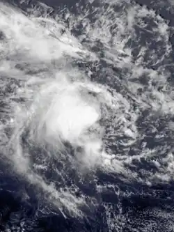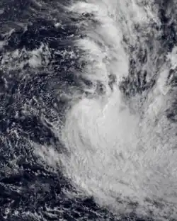 The system that was to become Tropical Cyclone Joti was first noted by the Central Pacific Hurricane Center (CPHC) during October 30, while it was located about 1000 km (620 mi) to the north-east of Port Villa in Vanuatu.[8][9] Over the next day, the disturbance gradually developed further, as its outflow increased and atmospheric convection surrounding the system organized.[8] The disturbance was subsequently named Joti at 00:00 UTC on November 1, by the FMS as it had developed into a tropical cyclone.[8] As a result, this made Joti one of the earliest tropical cyclones ever recorded within the basin.[8] After it was named, Joti continued to develop as it completed a cyclonic loop, before it started to move south-westwards towards Vanuatu during November 2.[8][9]