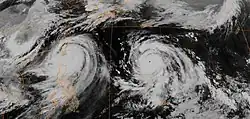 Satellite image of Typhoons Andy (left) and Bess (right) at 1500 UTC on July 28.