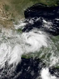 By September 6, the disturbance had emerged into the southwest Gulf of Mexico and consolidated into a smaller system which had enough organization to be classified as a tropical depression, the seventh of the season. The depression moved north-northwest into northeast Mexico on the afternoon of September 7, dissipating completely on September 8.[20]