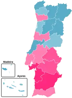| Setúbal | 104,122 | 25.23% | 72,116 | 17.47% | 187,907 | 45.53% | 48,600 | 11.77% | 79.07% | |