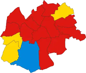 Last election 19 seats, 40.8% 18 seats, 35.5% 8 seats, 23.7%