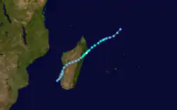 During the season, the Météo-France office (MFR) on Réunion island issued warnings in tropical cyclones within the basin. Using satellite imagery from National Oceanic and Atmospheric Administration, the agency estimated intensity through the Dvorak technique, and warned on tropical cyclones in the region from the coast of Africa to 90° E, south of the equator. The World Meteorological Organization recognized the MFR as a Regional Tropical Cyclone Advisory Centre in 1988, and would later label the agency as a Regional Specialized Meteorological Center in 1993.[1] The Joint Typhoon Warning Center (JTWC), which is a joint United States Navy – United States Air Force task force, also issued tropical cyclone warnings for the southwestern Indian Ocean.[2] The season's nine named storms is equal to the long term average, while the five tropical cyclones – a storm attaining maximum sustained winds of at least 120 km/h (75 mph) – was slightly below average.[3] The MFR considered the tropical cyclone year to begin on August 1 and continue to July 31 of the following year.[1]