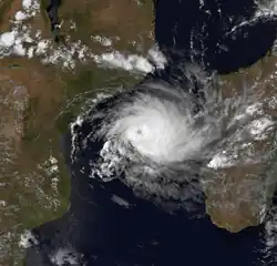 While crossing Madagascar, Doaza dropped a maximum of 113.9 mm (4.48 in) of rainfall over 24 hours, as well as producing a peak wind gust of 60 km/h (37 mph).[15] The storm brushed the east coast of Mozambique, producing flooding rains in Sofala, Zambezia, and Cabo Delgado provinces. It was the first major rainfall of the season for the country, helping offset a major drought.[16] Passing near Juan de Nova Island, Doaza produced sustained winds of 76 km/h (47 mph) with gusts to 96 km/h (60 mph). Later, it brushed Europa Island with sustained winds of 83 km/h (52 mph) and gusts of 133 km/h (83 mph).[14]