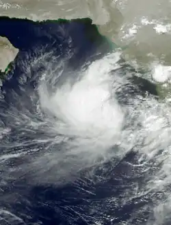 A tropical depression that formed on June 8 off the western coast of India tracked westward, becoming a tropical storm on the 9th. It looped to the north, where upper-level winds ripped it apart on the 12th.