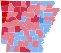 The vast majority of the counties voted primarily Republican, including the highly populated center of Pulaski County. As of the 2024 presidential election this stands as the last election in which Pulaski County and Crittenden County voted for a Republican presidential candidate.[18]
