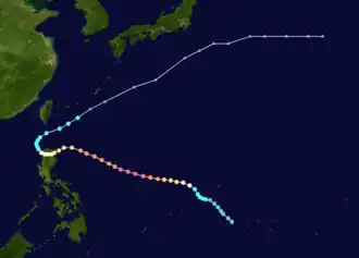 | Ruth (Trining) | October 19 – 31 | Violent typhoon | 215 km/h (130 mph) | 895 hPa (26.43 inHg) | Caroline Islands, Mariana Islands, Taiwan, Philippines | $151 million | 82 | |
