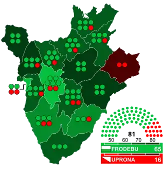 Parliamentary elections were held in Burundi on 29 June 1993. They were the first multi-party parliamentary elections since 1965, and followed the approval of a new constitution in a referendum in 1992. The result was a victory for the Front for Democracy in Burundi, which won 65 of the 81 seats.[1]