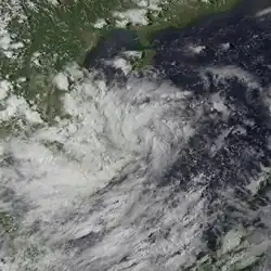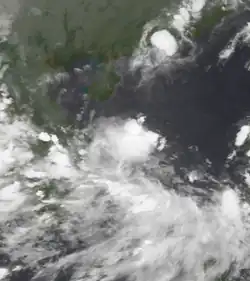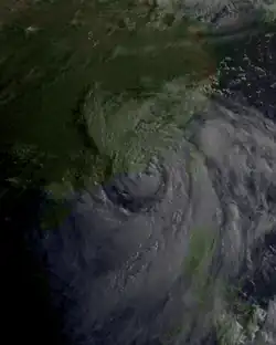 An active monsoon trough developed Tropical Storm Janis, forming on August 17 and becoming a tropical storm on the 21st. Another tropical depression to Janis's west merged with the storm, weakening it rather than the typical strengthening after a merger. Janis continued northwestward, eventually restrengthening to a 65 mph tropical storm before hitting eastern China. It recurved to the northeast, and hit near Seoul, South Korea, on the 26th. The storm brought more rain to an area hit by a typhoon only a month before, causing an additional 45 deaths and $428.5 million in damage.