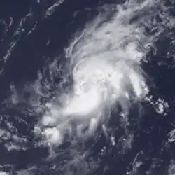 A tropical wave emerged into the Atlantic from the west coast of Africa on July 17. It developed into Tropical Depression Three near Isla Margarita of Venezuela on July 24. The depression headed westward, steered by a strong high pressure area over the Bahamas. On July 25, the depression strengthened into Tropical Storm Cesar. Around that time, it struck Curaçao.[29] Cesar caused minor damage in the ABC islands to roofs and trees; one person drowned in heavy surf on Curaçao.[30] An additional three people drowned offshore Venezuela.[31] In Colombia, heavy rainfall caused 3 deaths,[32] 2 of which were from a mudslide in Pueblo Bello.[33] Strong winds and significant amounts of precipitation lashed the Archipelago of San Andrés, Providencia and Santa Catalina, unroofing 60 homes,[34] and resulting in 11 fatalities,[35] and resulting in 800 million COP ($440,00 USD) in damage.[34] The storm continued westward and intensified into a hurricane on July 27.[29]