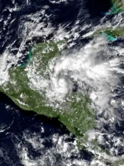 The storm brought heavy rainfall to much of Mexico, peaking at 37.41 inches (950 mm).[42] In Quintana Roo, flooding destroyed a large amount of farmlands. Widespread flooding occurred after a river in the Pueblo Viejo area overflowed its banks. Hundreds of homes were destroyed, displacing about 35,000 people. Large scale evacuations occurred in San Luis Potosí, while about 6,500 fled their homes in the Tampico area. Communications and power outages were reported as far west as Mazatlán, Sinaloa. Throughout Mexico, there were fourteen fatalities reported, six in Veracruz, three in Nuevo León, and one in Monterrey. Additionally, two people were left missing in Nuevo León.[41] The outer bands of Dolly brought rainfall to southern Texas, which caused minor flooding, but was mostly beneficial due to drought conditions in the state.[43]