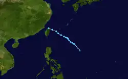 Vicki developed in the South China Sea west of Luzon on September 17. Vicki moved east and crossed Luzon. After landfalling on Luzon, Vicki moved northeast and struck the Kii Peninsula in Japan on September 22 before becoming extratropical. The storm caused the deaths of 108 people. Insurance claims nationwide in Japan reached ¥159.9 billion (US$1.22 billion).[26]