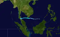 Dawn November 16 – 20 Tropical storm 65 km/h (40 mph) 998 hPa (29.47 inHg) Vietnam, Cambodia $28 million 187
