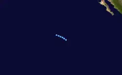 A tropical wave moved across the Atlantic and Caribbean in early July. While crossing Central America on July 11 and July 12, the system produced gusty winds and heavy rainfall, especially in Honduras, Nicaragua,[3] and Mexico, where precipitation reached 15.75 inches (400 mm) in Coyutla, Veracruz.[4] By July 13, the wave and associated low pressure area emerged into the Pacific Ocean. The system organized further and developed into Tropical Depression Three-E at 1200 UTC on July 14, while located about 290 miles (470 km) west-southwest of Manzanillo, Mexico. It initially headed west-northwestward until July 15, when it curved west-southwestward. The depression failed to strengthen further and dissipated at 1800 UTC on July 15, while located about 460 miles (740 km) southwest of Cabo San Lucas, Mexico.[3]