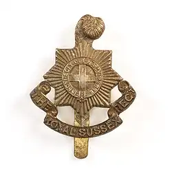 The two TF battalions of the Royal Sussex (4th and 5th) were not included in the Home Counties Division, but were attached to it as 'Army Troops'.[22][34][35]