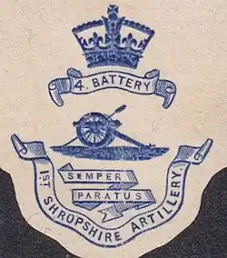![]() Letterhead of the 4th Battery, Shropshire and Staffordshire Artillery Volunteers, c1900 | |