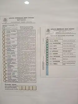 3. ^ One Lithuanian Union of Political Prisoners and Deportees candidate was elected in the nationwide constituency, having run on the list of the Homeland Union.